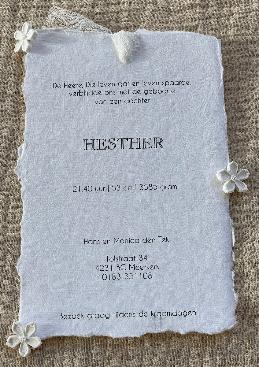 Geboortekaartje Hester